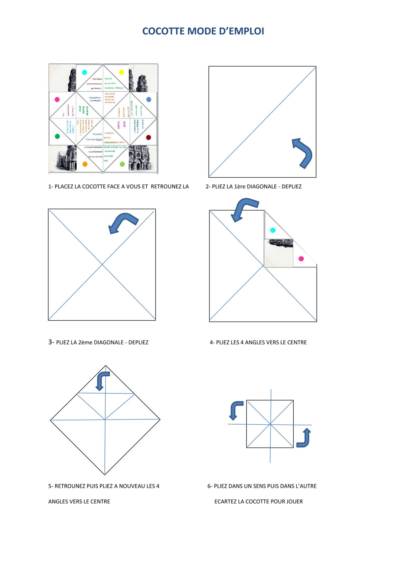 Après avoir imprimé la cocotte, suivez les instructions de montage. Finalement, glissez vos doigts dans le pliage et actionnez la cocotte en comptant jusqu'au chiffre choisi par votre partenaire ! Posez la question correspondant au chiffre.