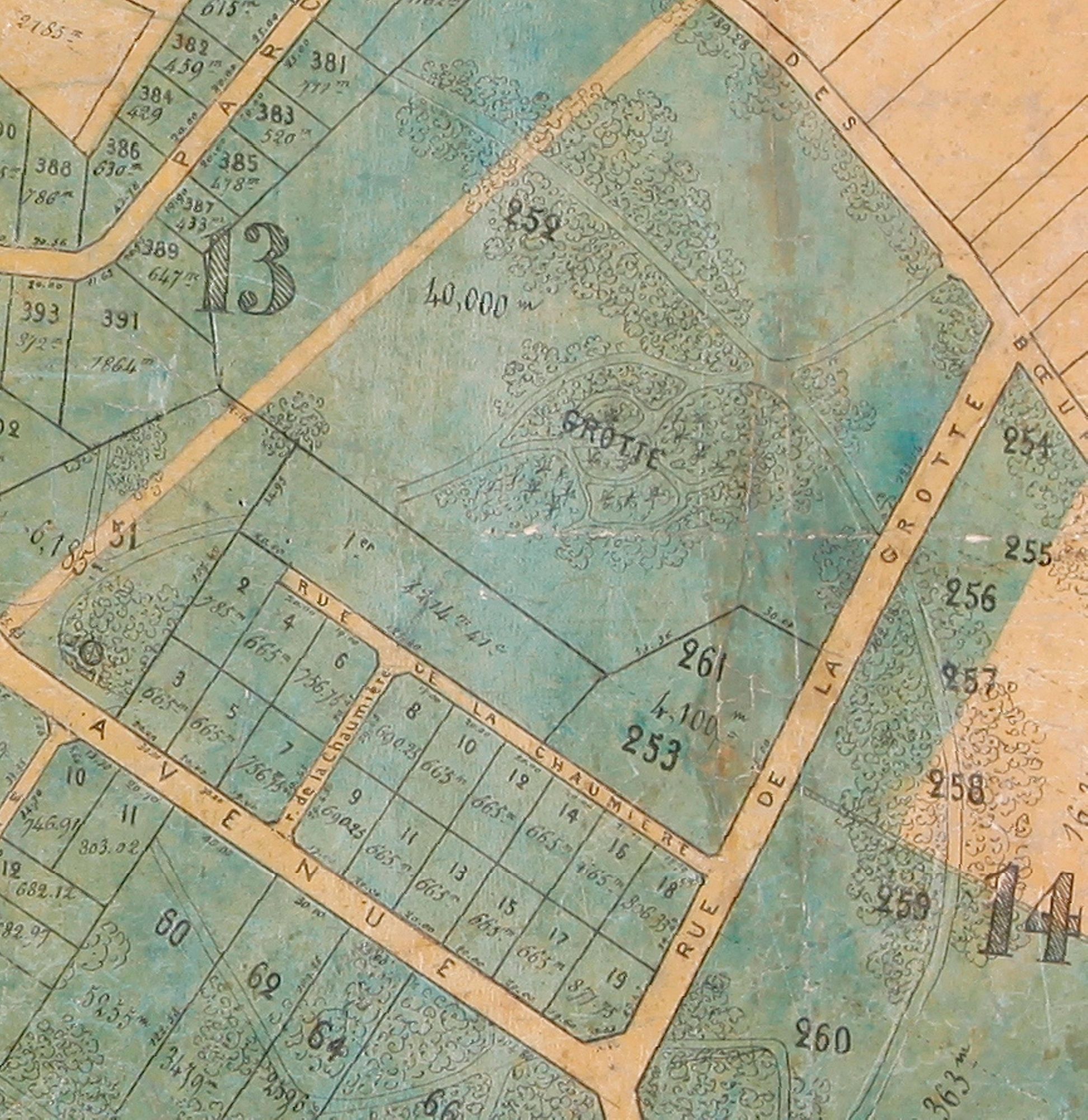 Souhaitant imiter et reproduire la nature, Daguerre conçoit un véritable diorama naturel dans les environs de l’actuelle rue Marcelin Berthelot. Il ordonne d’importants mouvements de terrain et réalise un pittoresque paysage d’inspiration romantique. Il fait élever une petite colline, sur laquelle il construit les ruines d’un vieux château médiéval et plante des sapins. Au bas de la colline, il érige une chapelle en ruine, avec arcatures, et aménage une fausse grotte baignée par un étang environné de rochers. Pour accéder à la grotte, il fait bâtir un pittoresque pont de pierre qui franchit l’étang. Jouant avec la végétation, il s’arrange pour que ce paysage grandiose se révèle inopinément aux yeux des visiteurs au détour d’un chemin pour créer un effet de surprise.