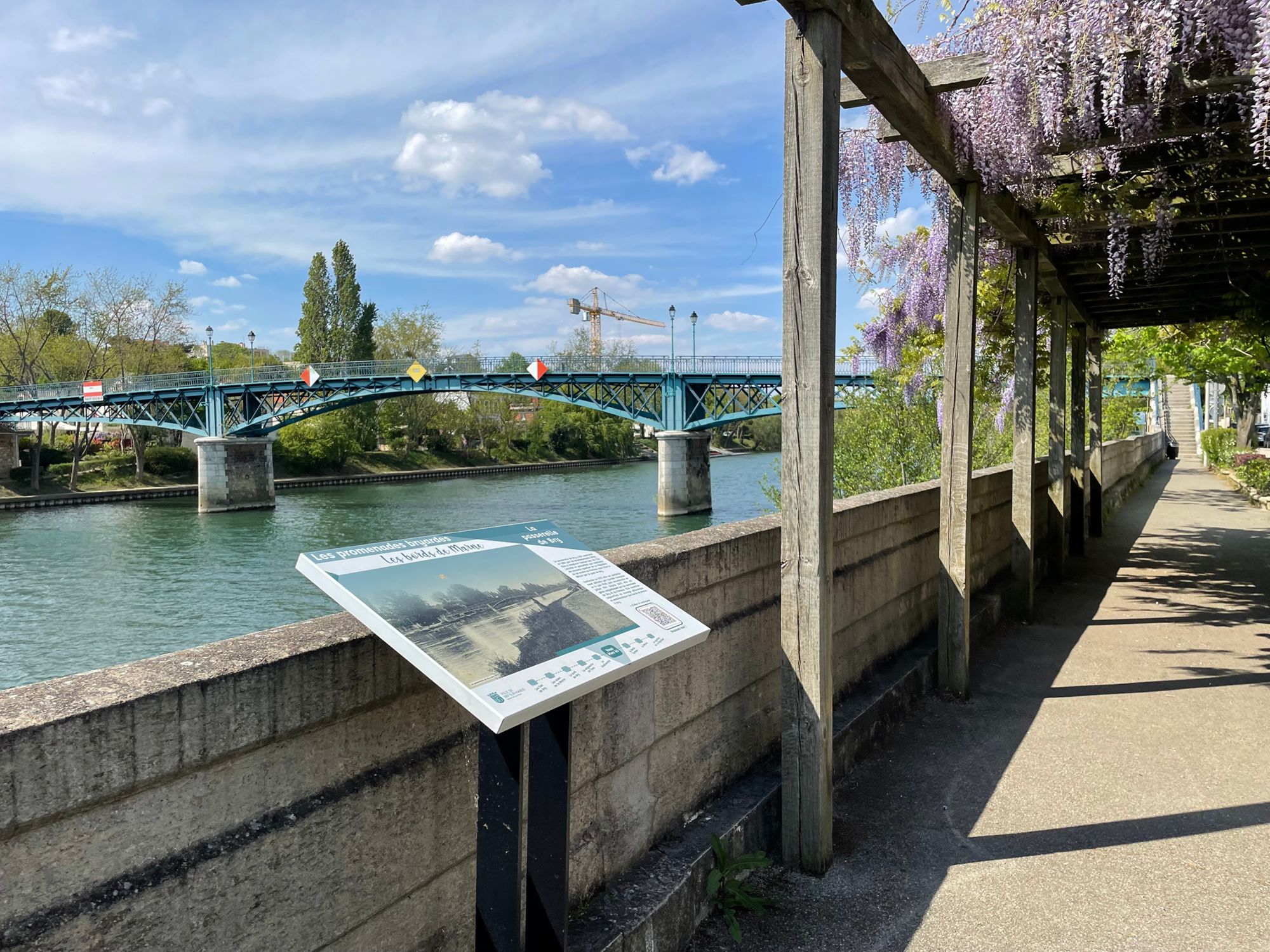 A travers des bulles sonores accessibles depuis un QR code vous pourrez découvrir des récits passionnants sur l'histoire et le patrimoine de Bry. Actuellement une balade est proposée sur les bords de Marne. Repérez les neuf panneaux d'information thématiques installés entre les îles de Bry et le pont du RER, scannez le QR code et accédez à un audioguide et à de nombreux documents historiques.