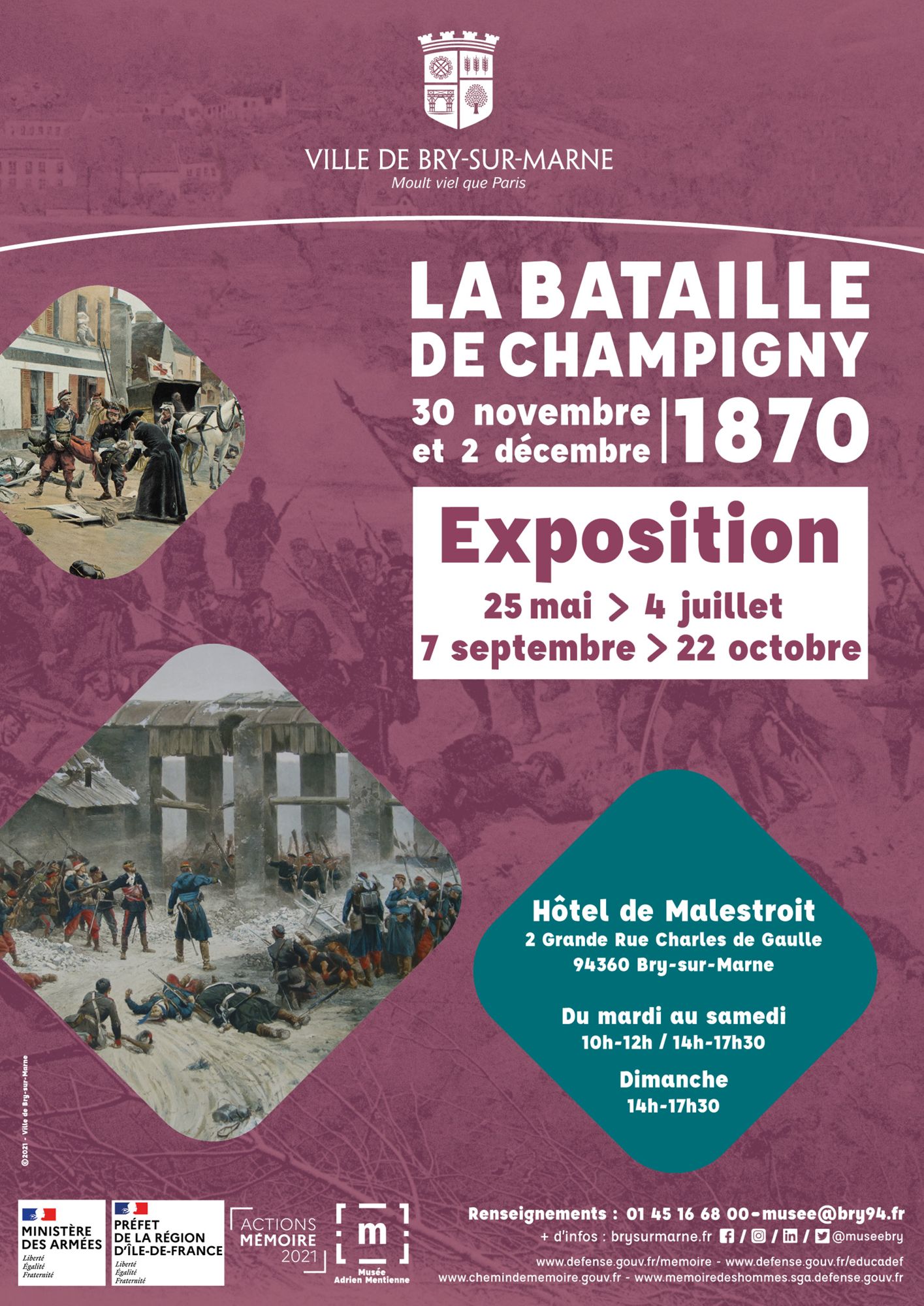 Plus récemment, l’histoire locale a été remise au cœur de l’attention du musée, avec une exposition autour des archives municipales anciennes (2017), une exposition sur l’histoire des écoles de Bry (2019) et une exposition d’envergure consacrée à la bataille de Champigny (2021), dans le cadre de son 150e anniversaire, qui a bénéficié de nombreux prêts extérieurs (musée Carnavalet, musée de l’Armée, BNF, etc).